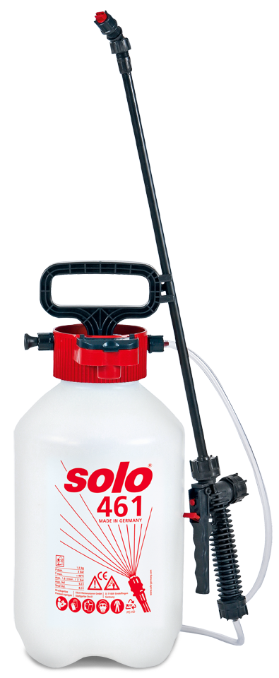Der SOLO 461 Drucksprüher aus der Comfort-Line besteht aus einem standsicheren, robusten, UV-beständigen und semitransparenten Behälter mit 5 Liter Füllvolumen und einer eingeprägten Füllstandmarkierung. Der Pumpenkolben mit Tragegriff ist aus robustem Kunststoff gefertigt. Mit 1,5 kg ist das Gerät sehr leicht gehalten. Mit dem 1,6 m langen und 25 mm breiten, längenverstellbaren Gurt lässt sich die Druckspritze bequem über der Schulter mitführen.
