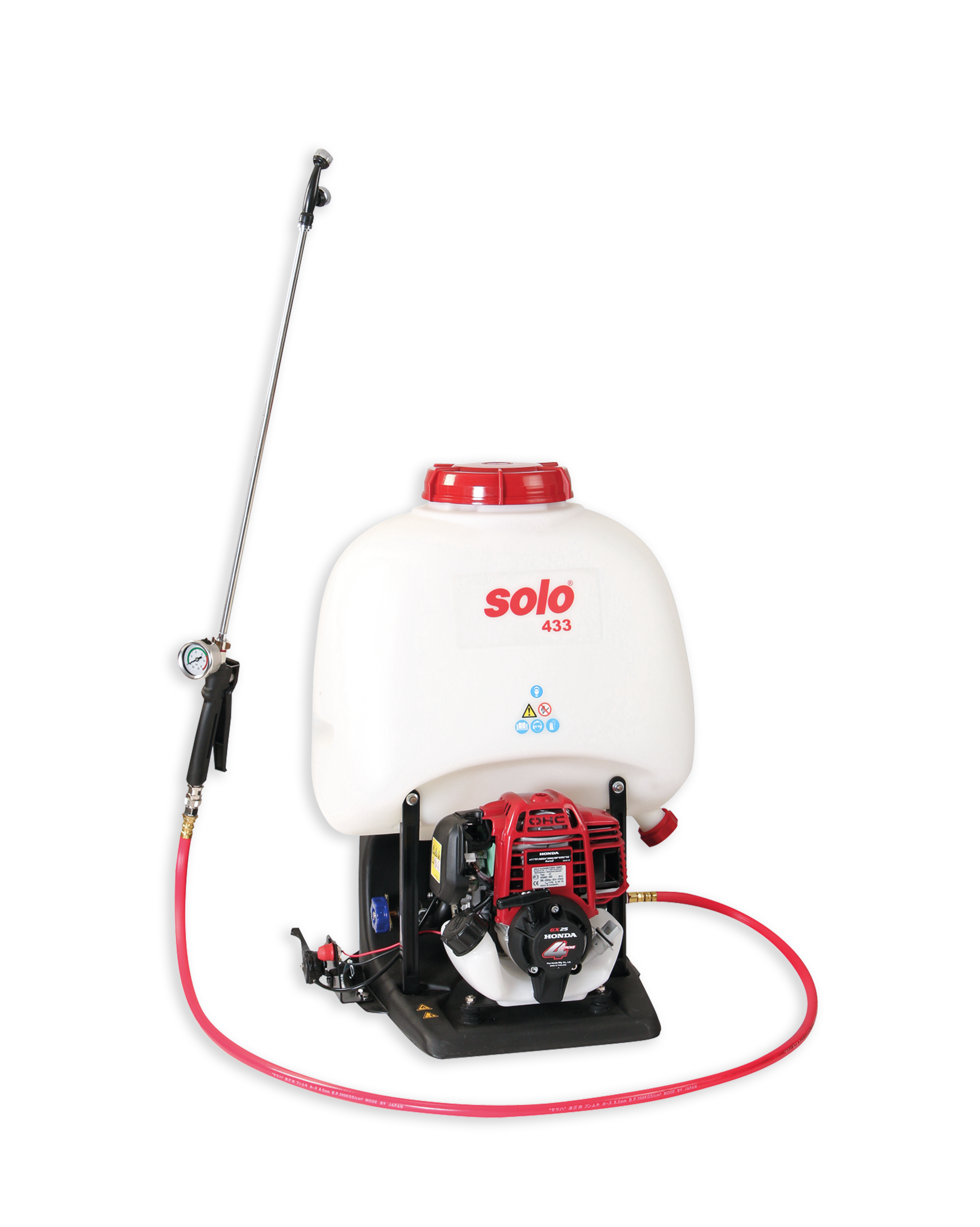 Starker Motor, starke Leistung: Die rückentragbare Motorspritze 433 von SOLO besitzt einen kraftvollen Motor, der einen Arbeitsdruck von bis zu 30 bar erzeugen kann. Mit diesem Hochdruck können Sie auch den feinsten Sprühnebel bis in die Höhen spritzen. Und durch den 20 l Behälter sind auch lange Arbeitsphasen ohne Nachfüllen möglich – das alles natürlich nur mit dem größten Arbeitskomfort und erstklassiger SOLO-Qualität.